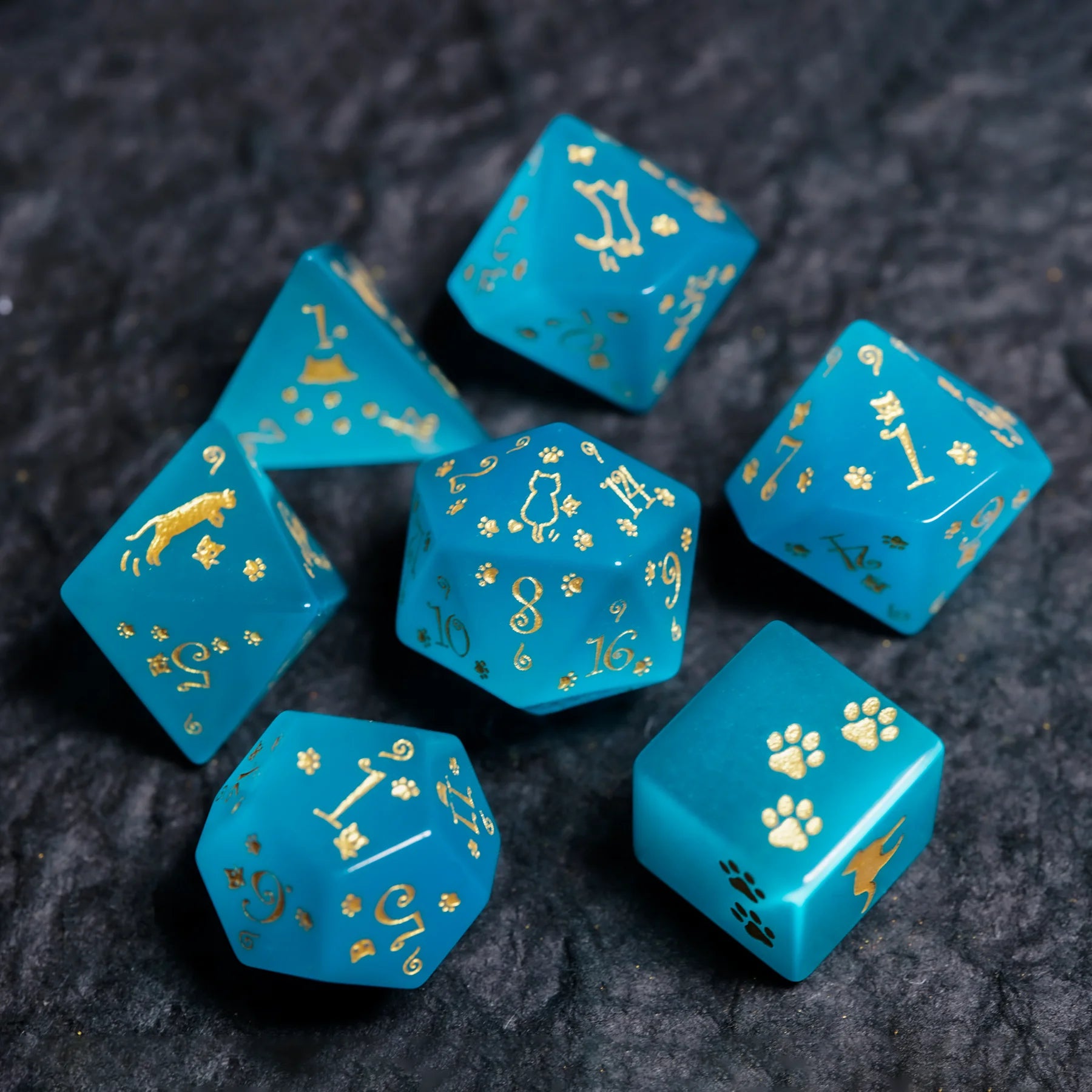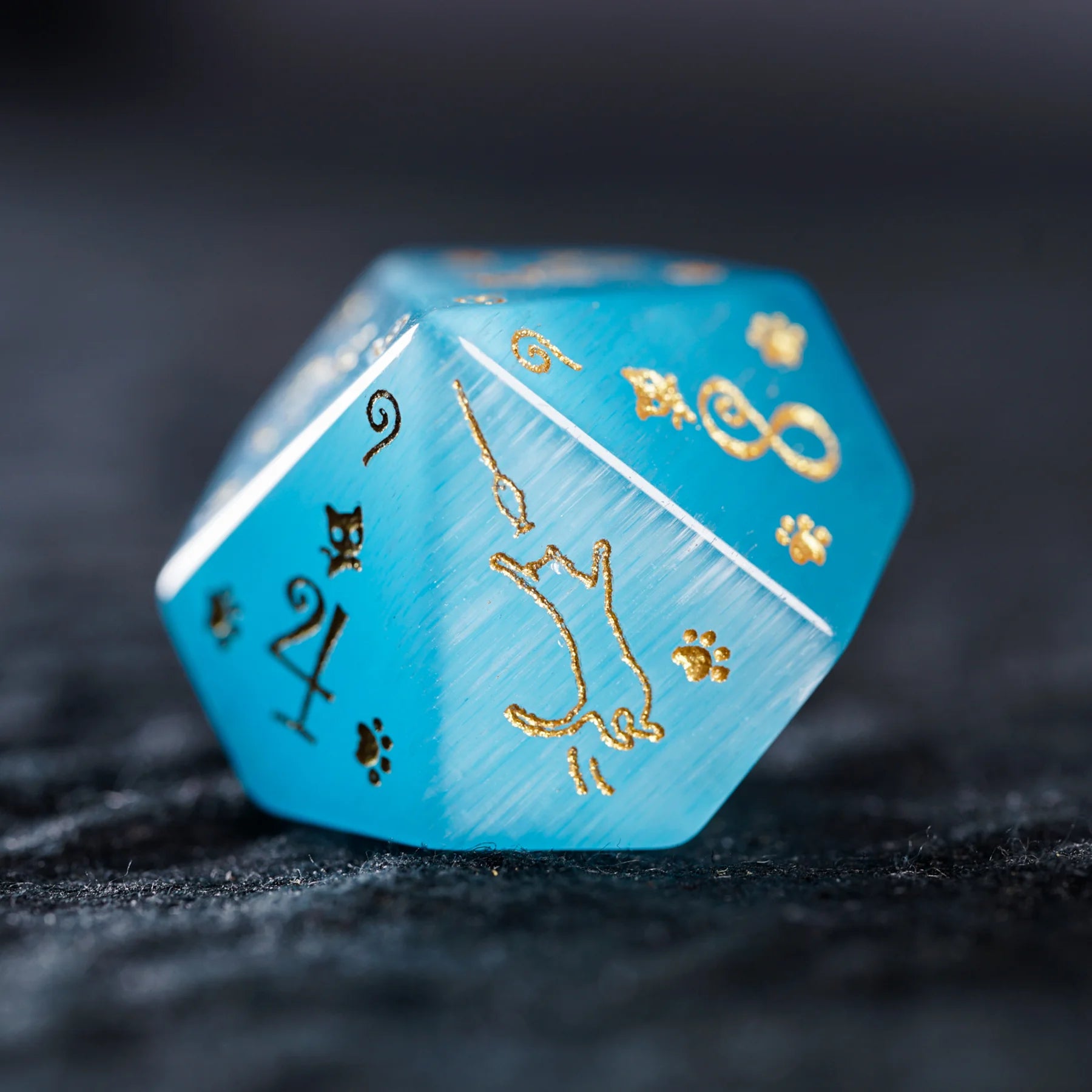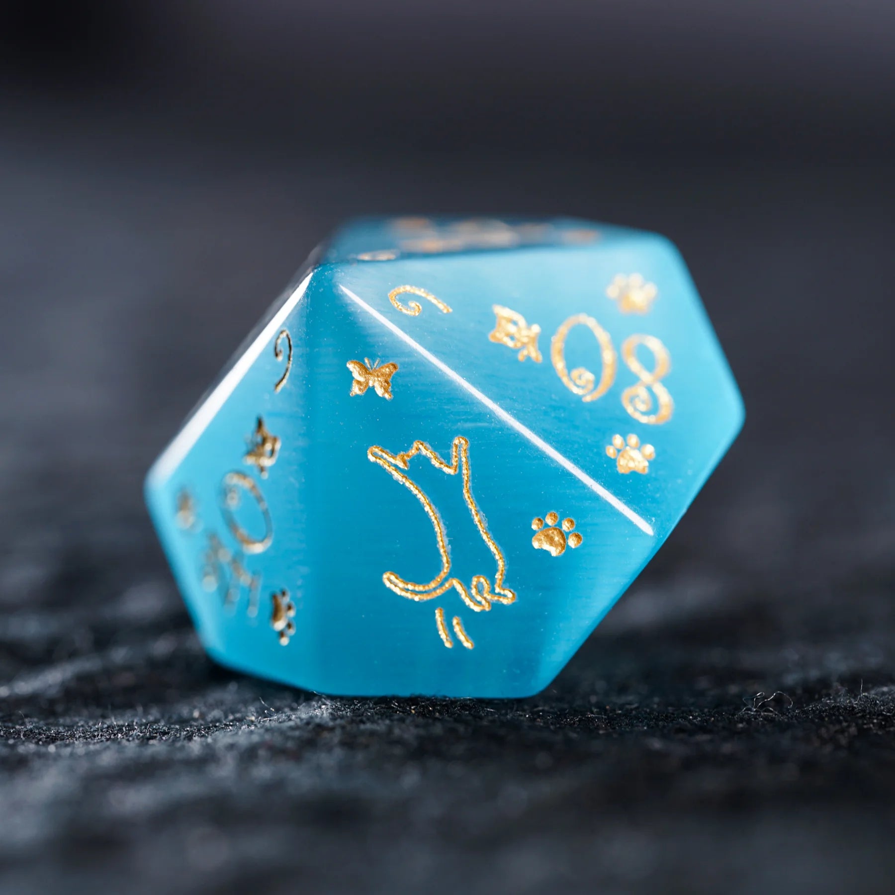 - 7 pcs of Light Blue Cat’s Eye Gemstone Dice