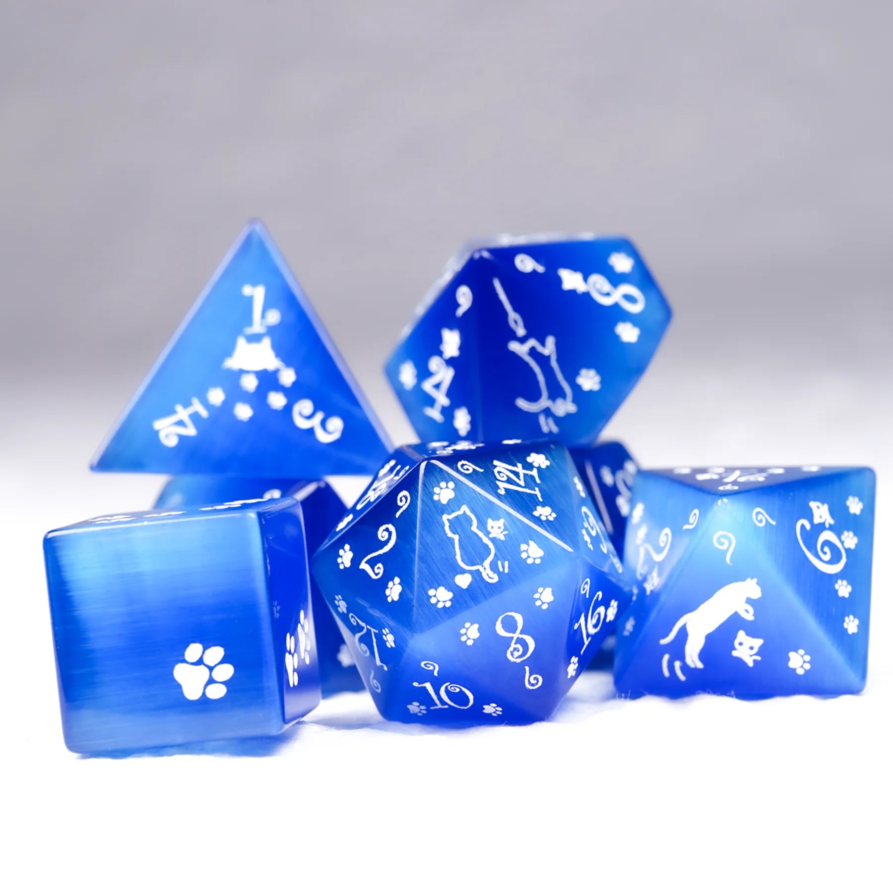 - 7 pcs of Royal Blue Cat’s Eye Gemstone Dice