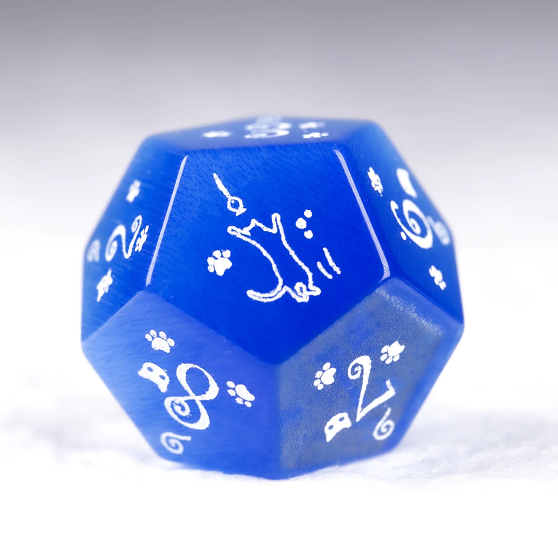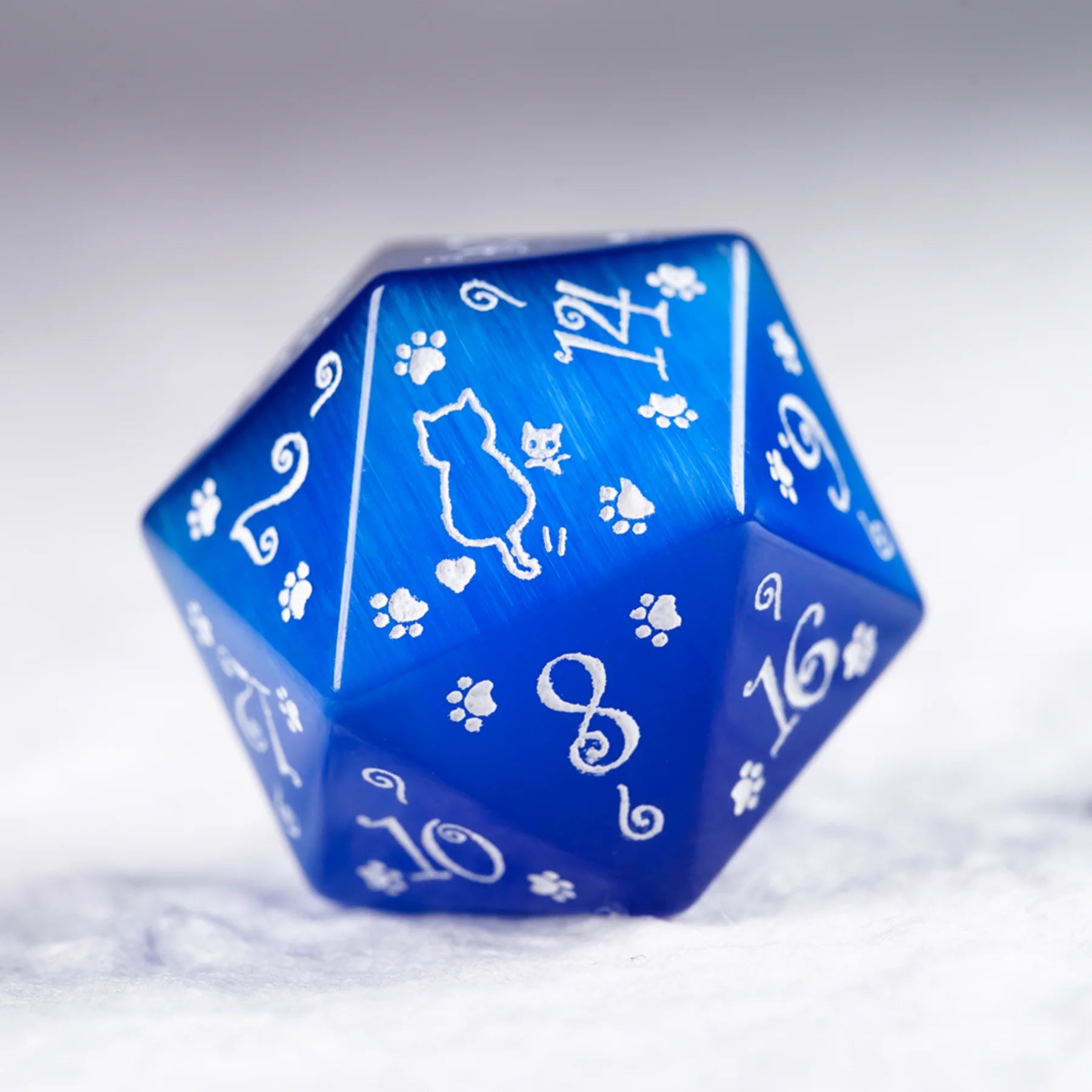 Aurora’s Midnight Watch · Royal Blue Cat’s Eye Engraved Gemstone Dice Set