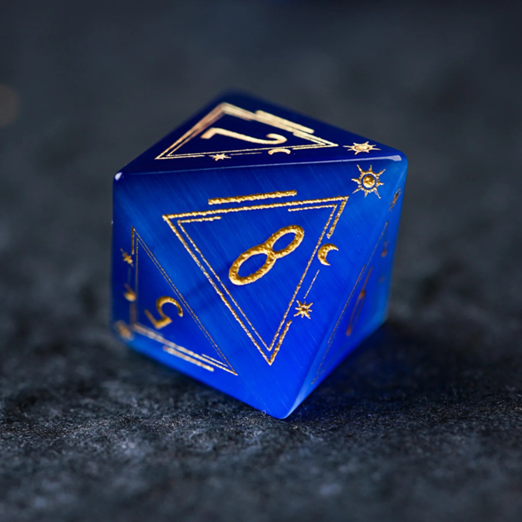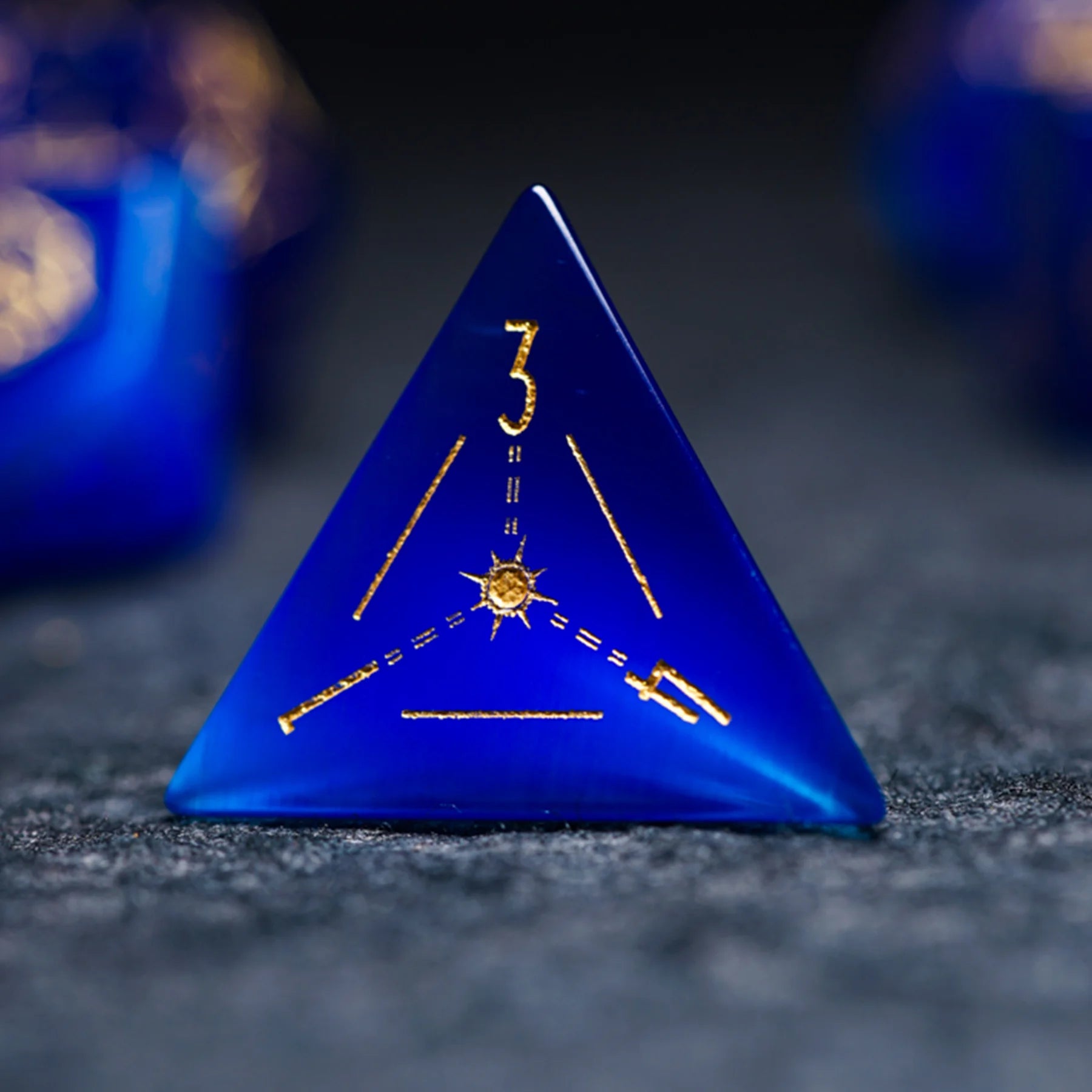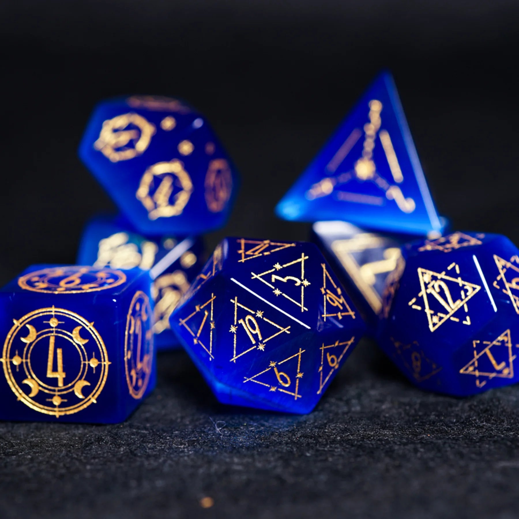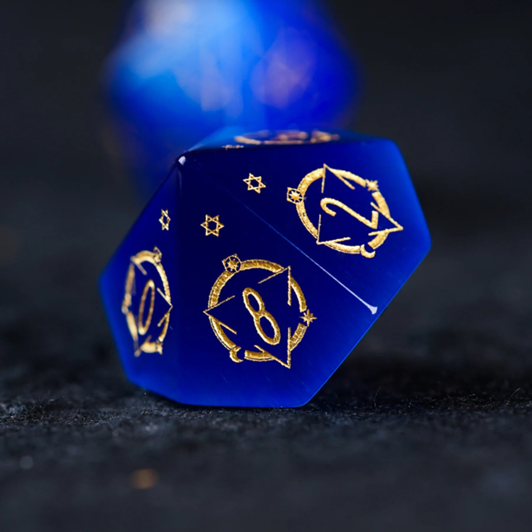 Celestial Palace · Oath of Wisdom · Royal Blue Cat’s Eye Dice Set