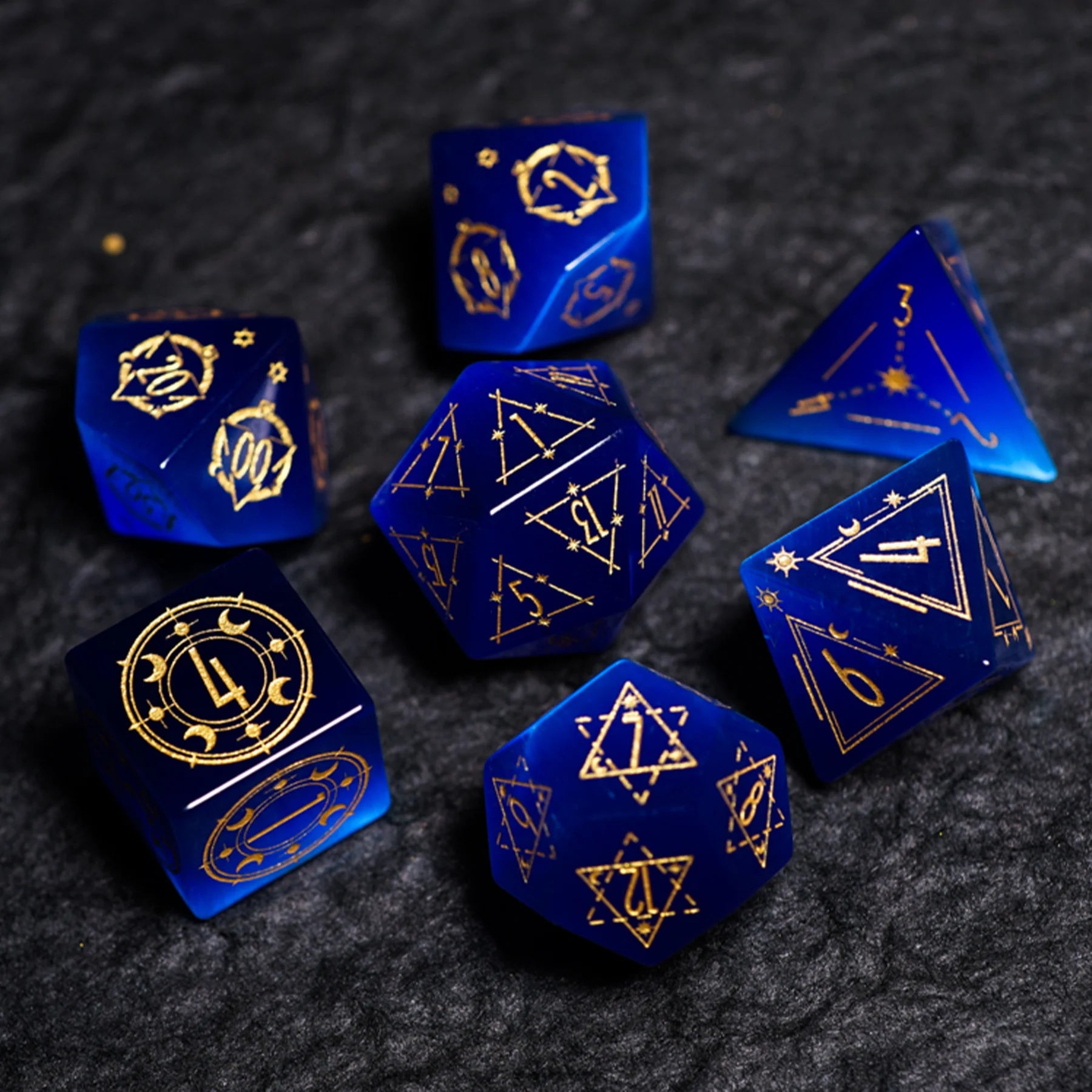 - 7 pcs of Royal Blue Cat’s Eye Dice Set