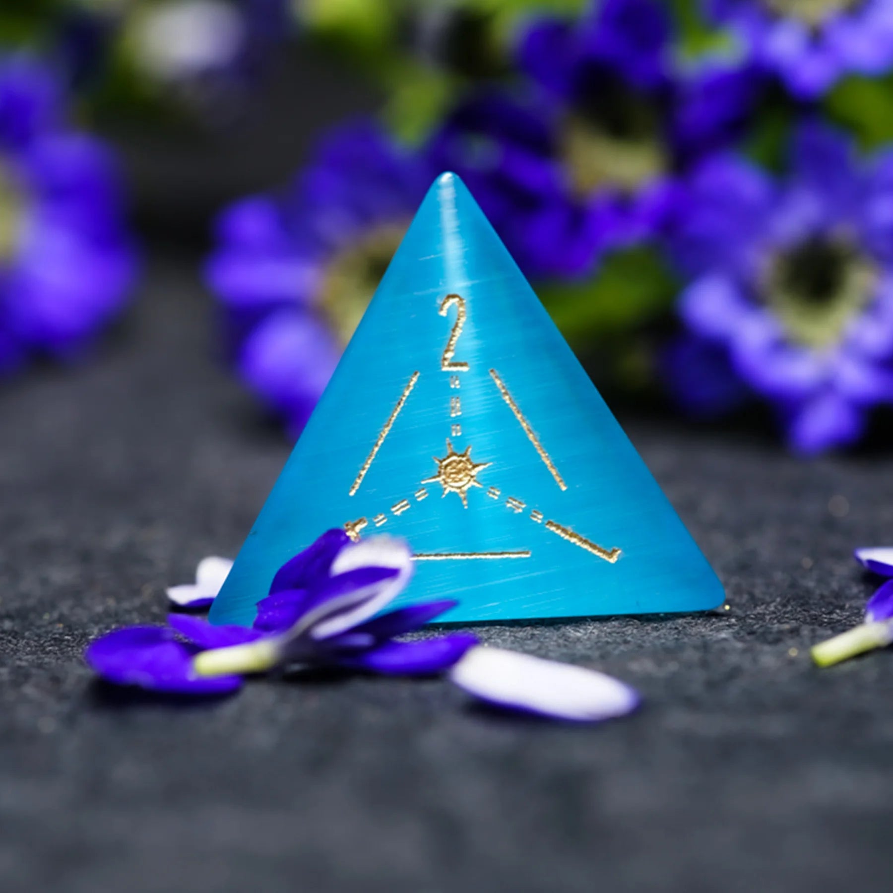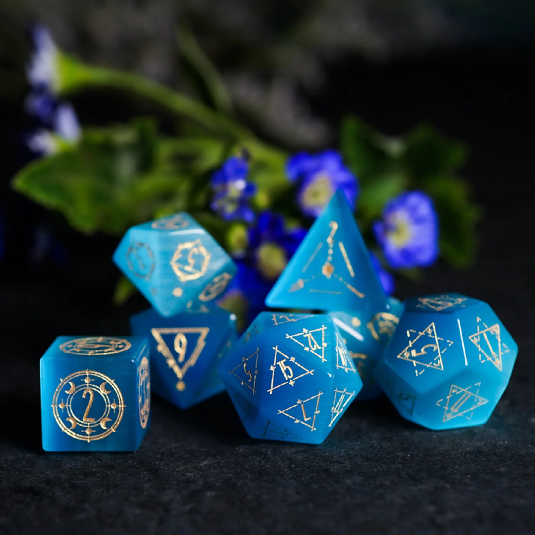 - 7 pcs of Aquamarine Cat’s Eye Dice Set