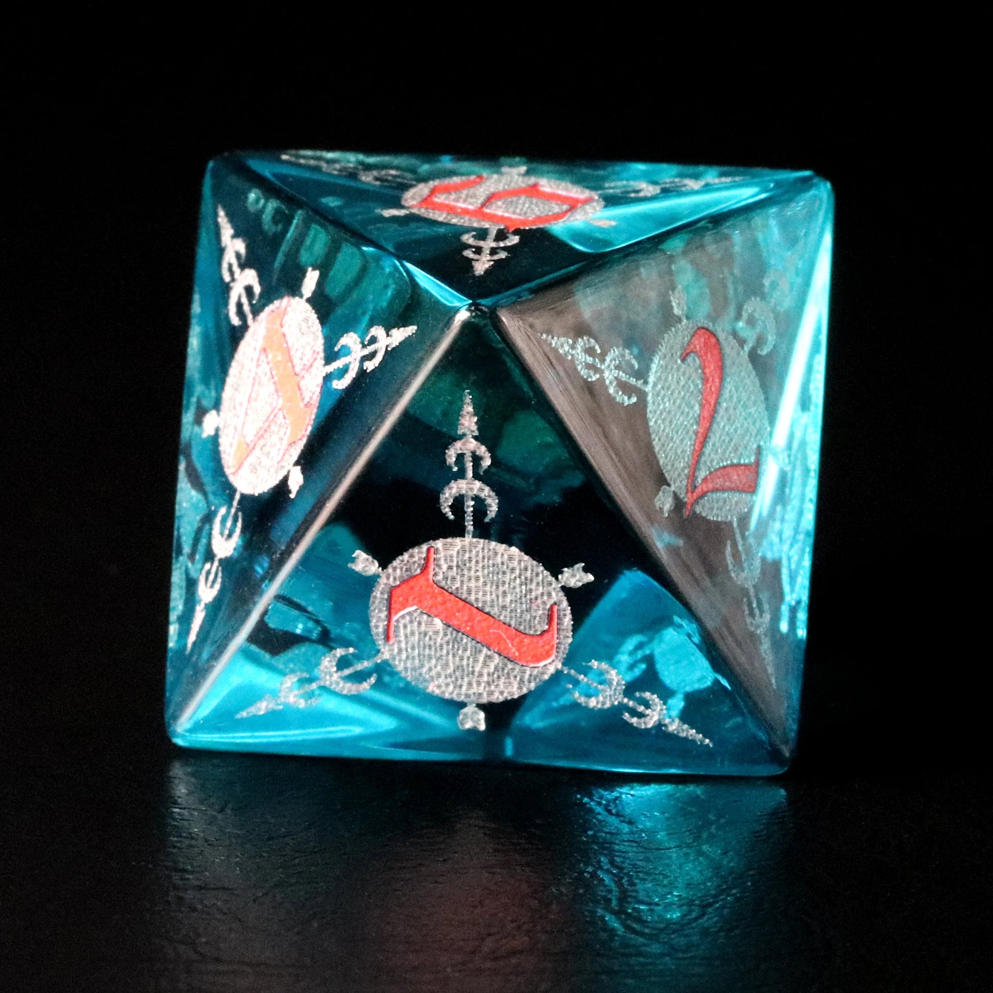 Moon Magic Sigil Blue Zircon Engraved Glass Dice Set