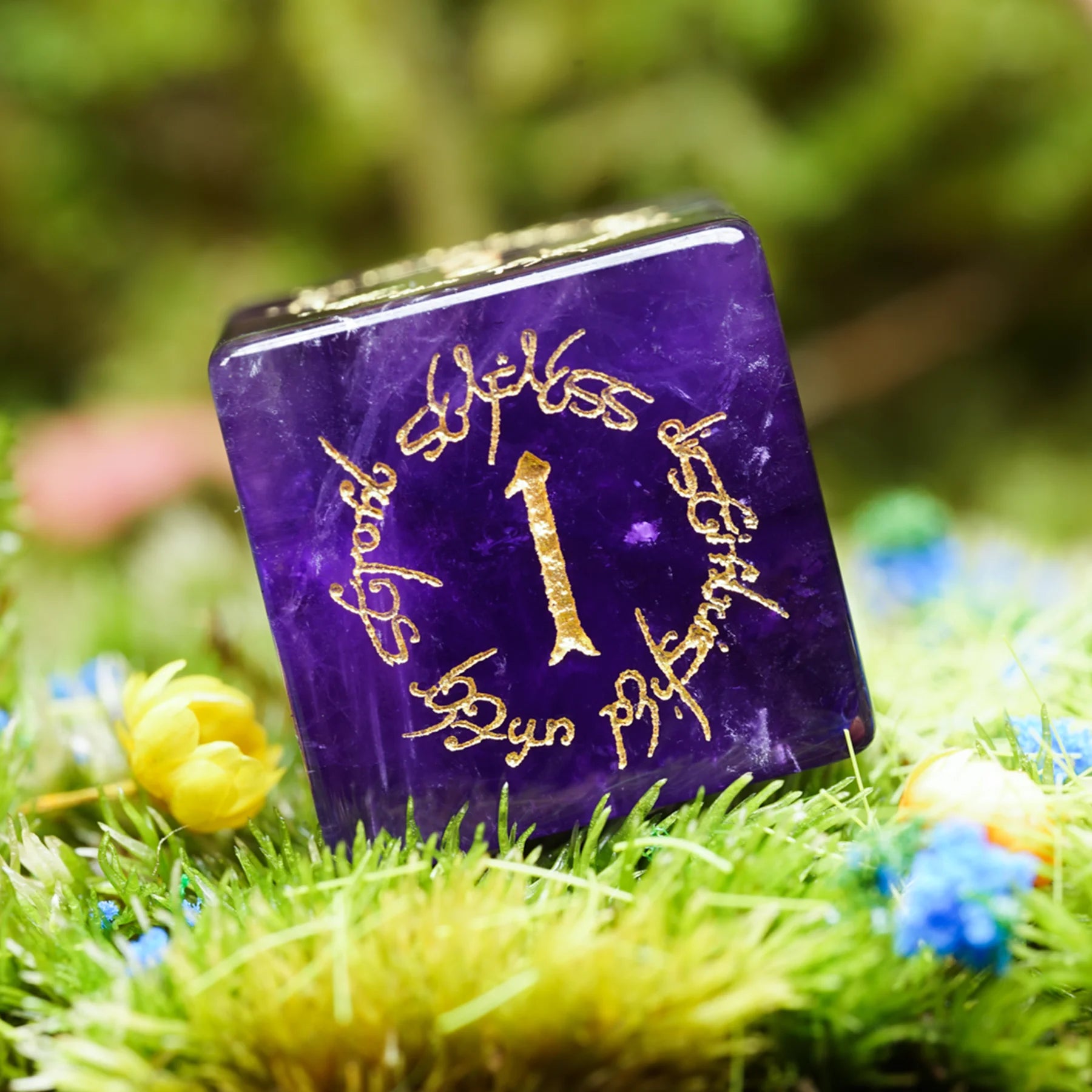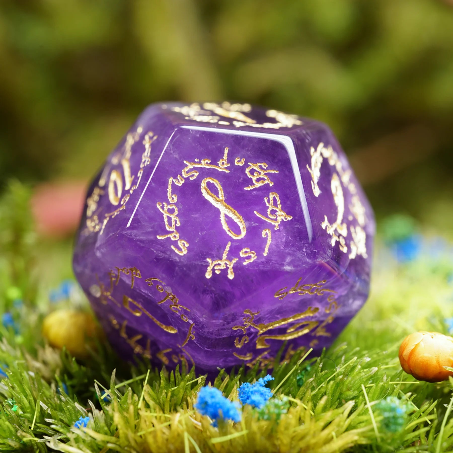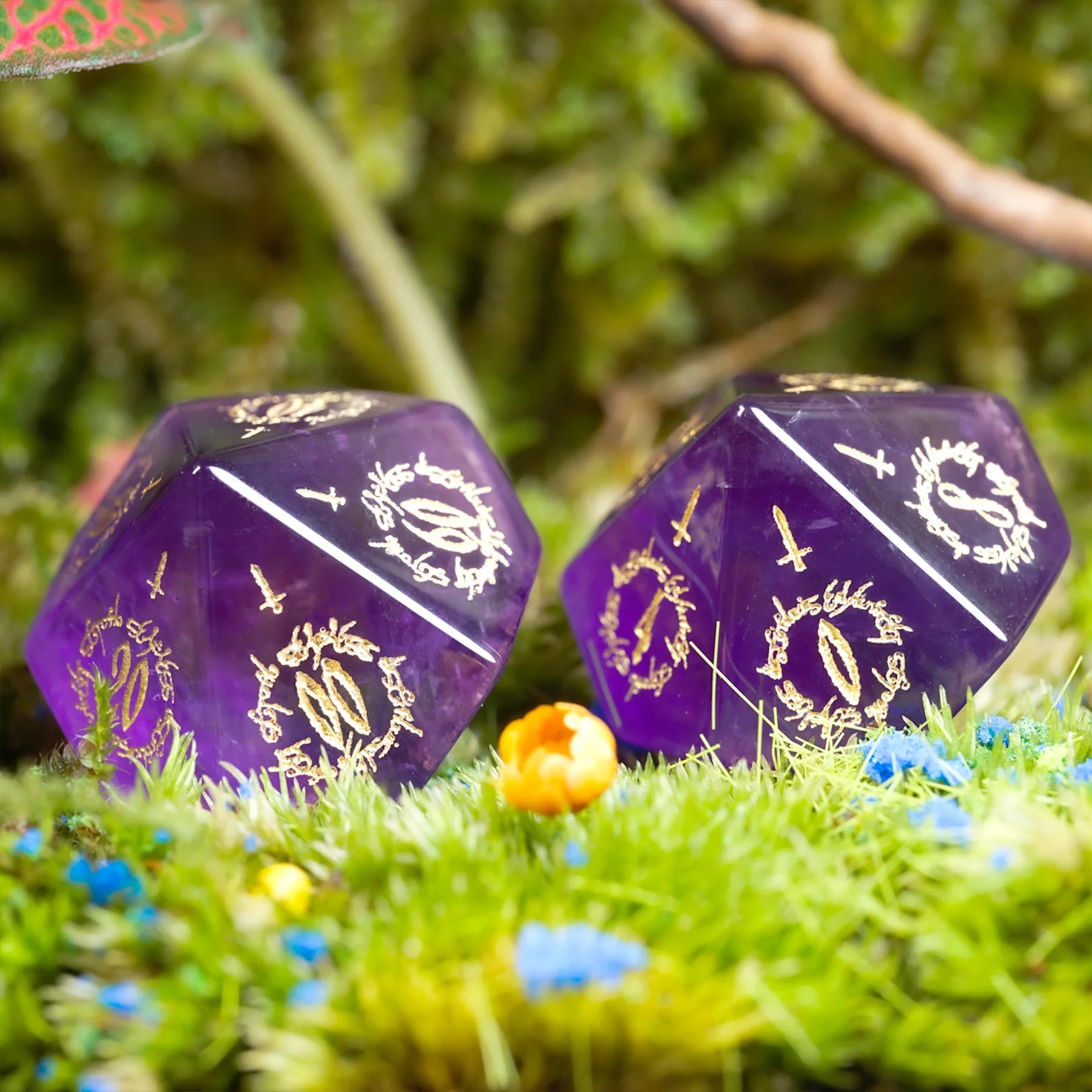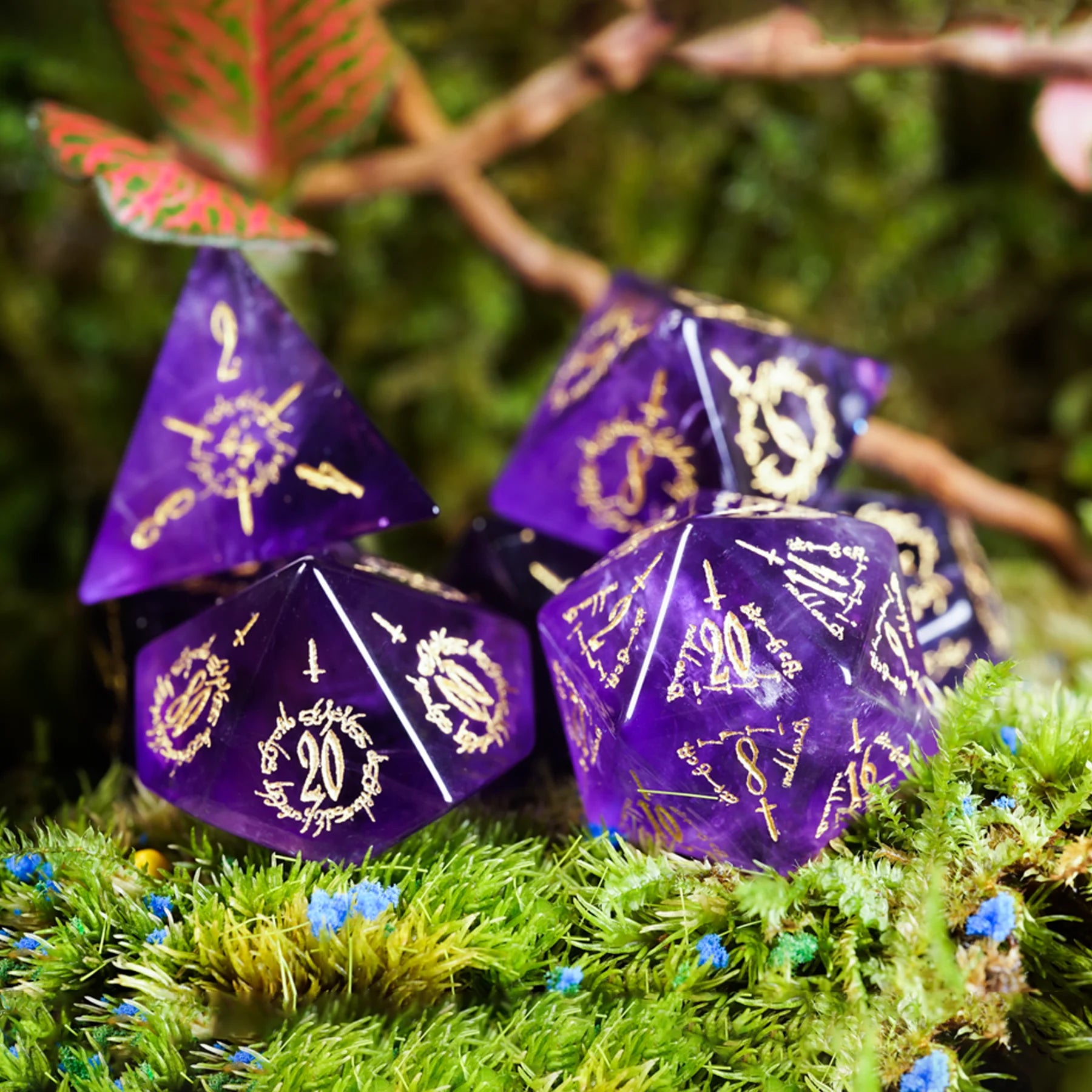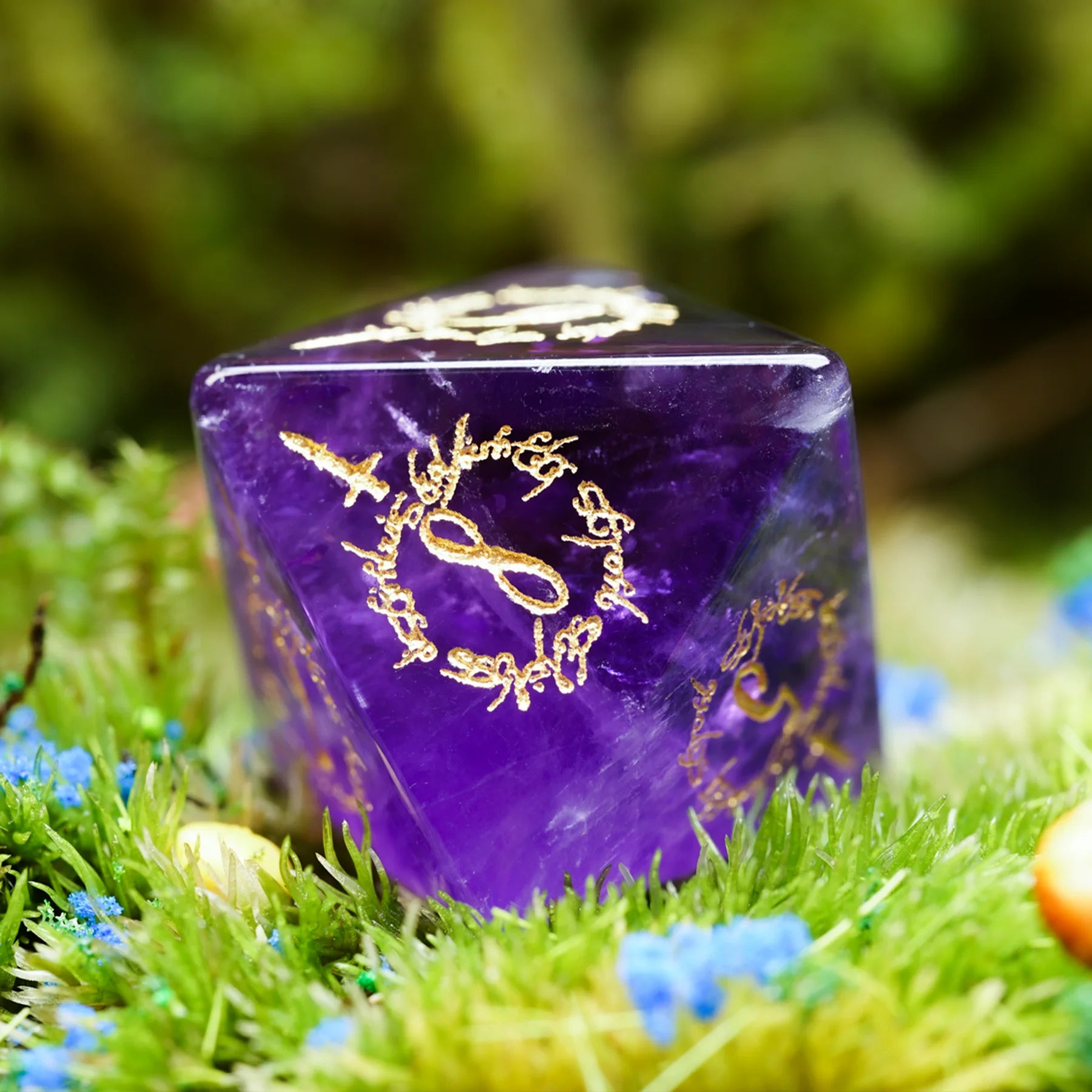 Dreamweaver · Amethyst Engraved Gemstone Dice Set