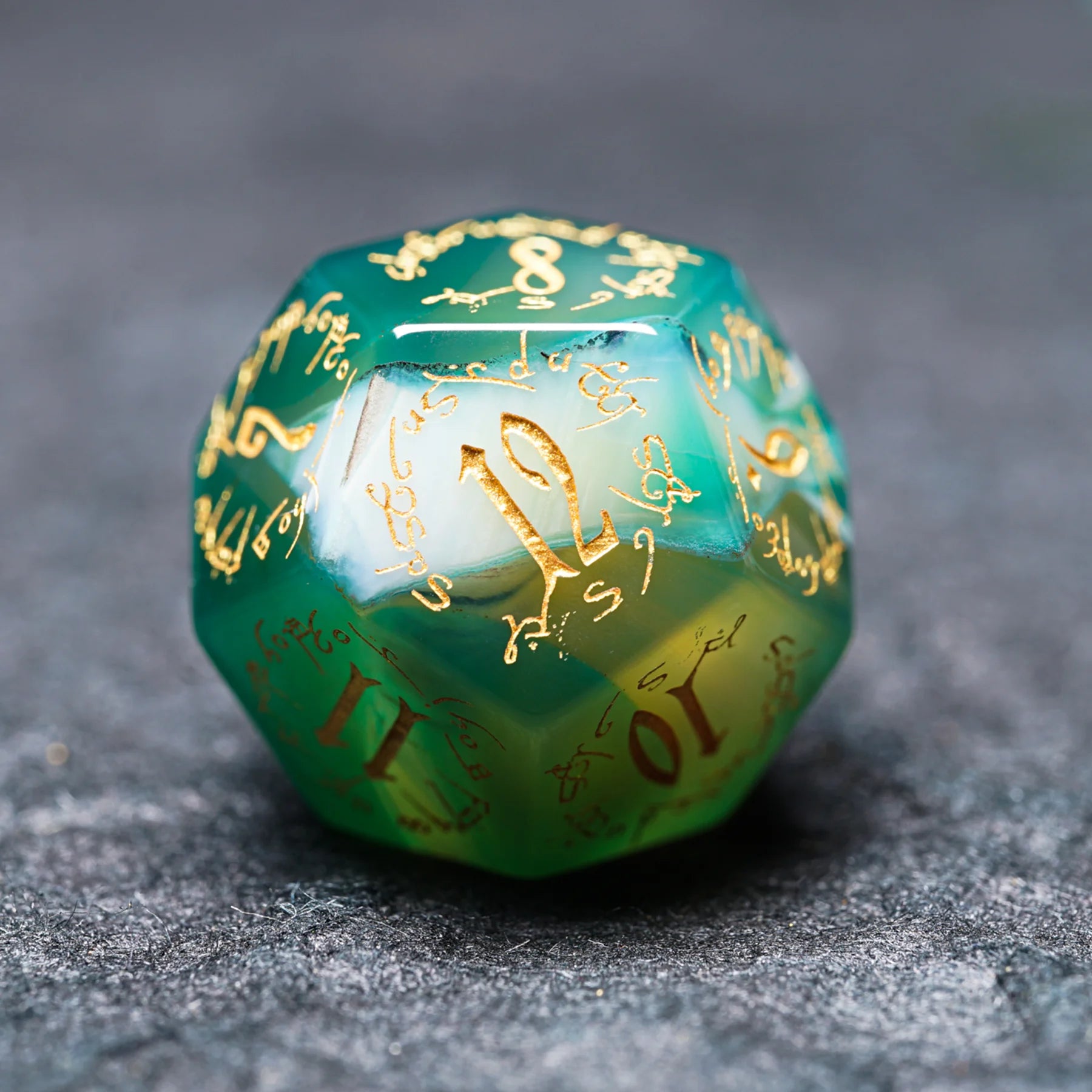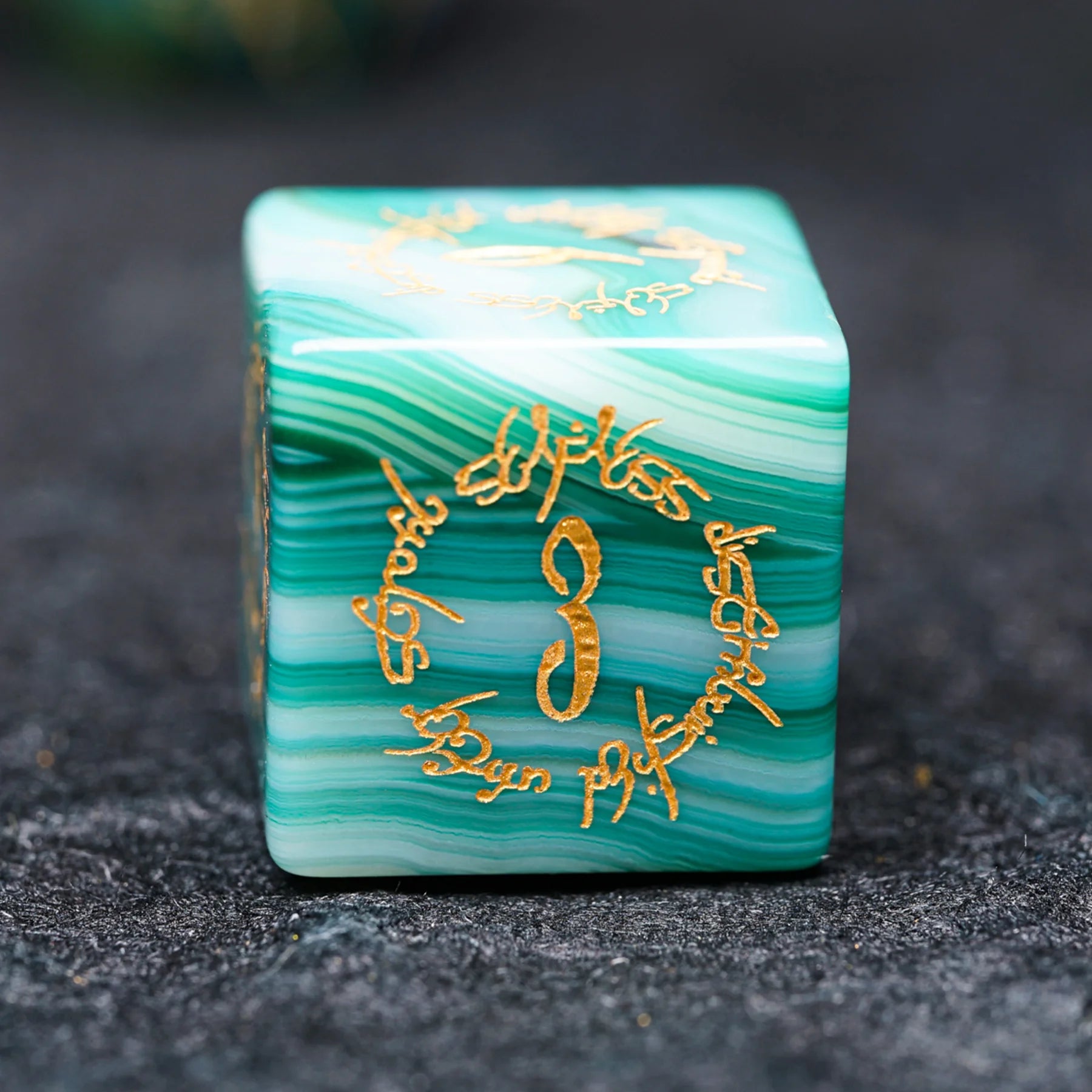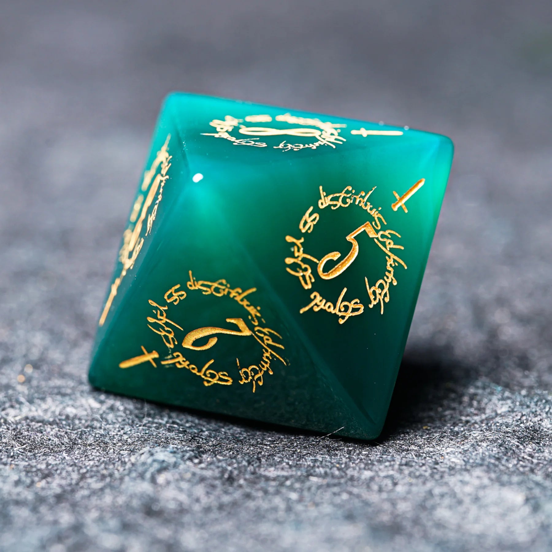 Jade Alchemist · Green Agate Engraved Gemstone Dice Set