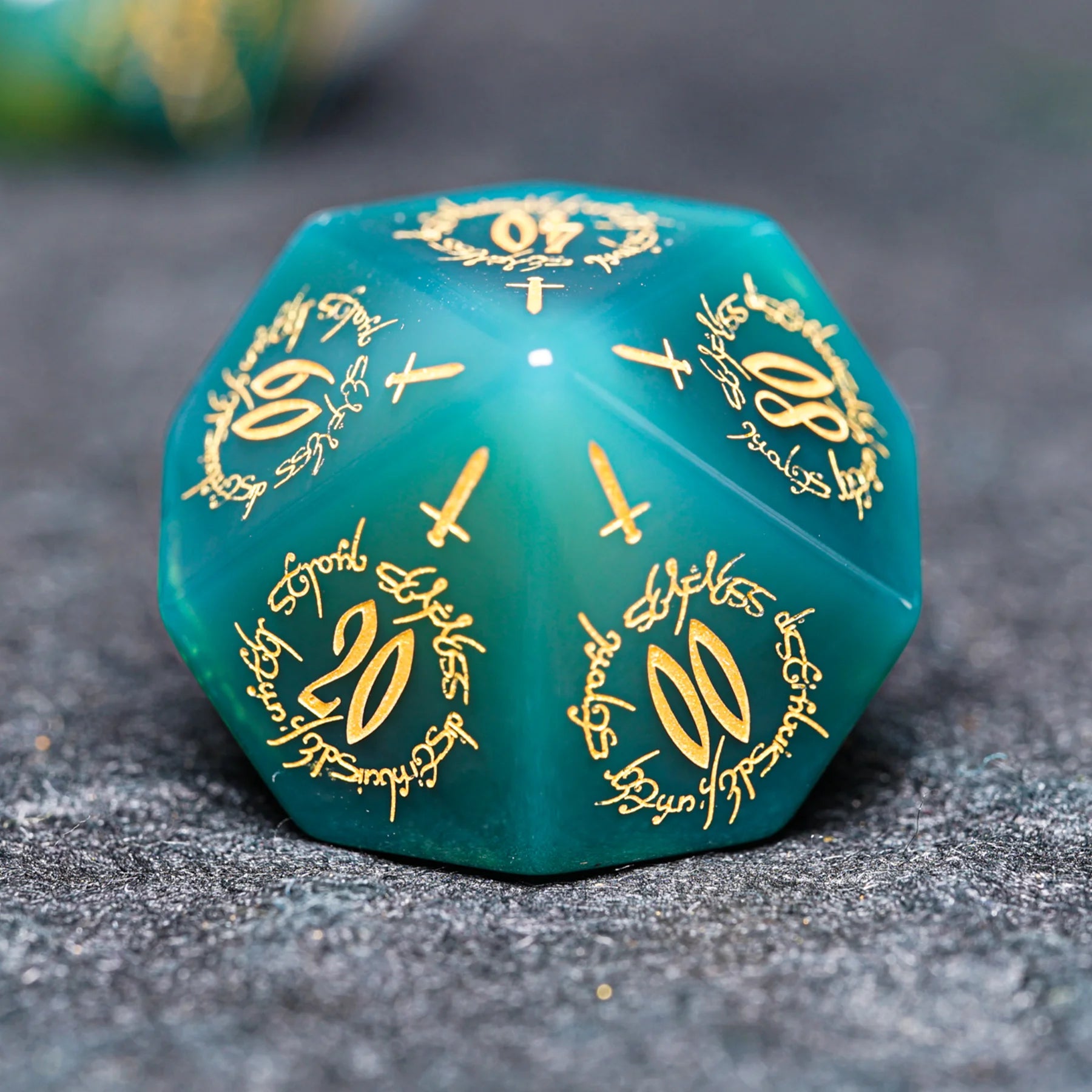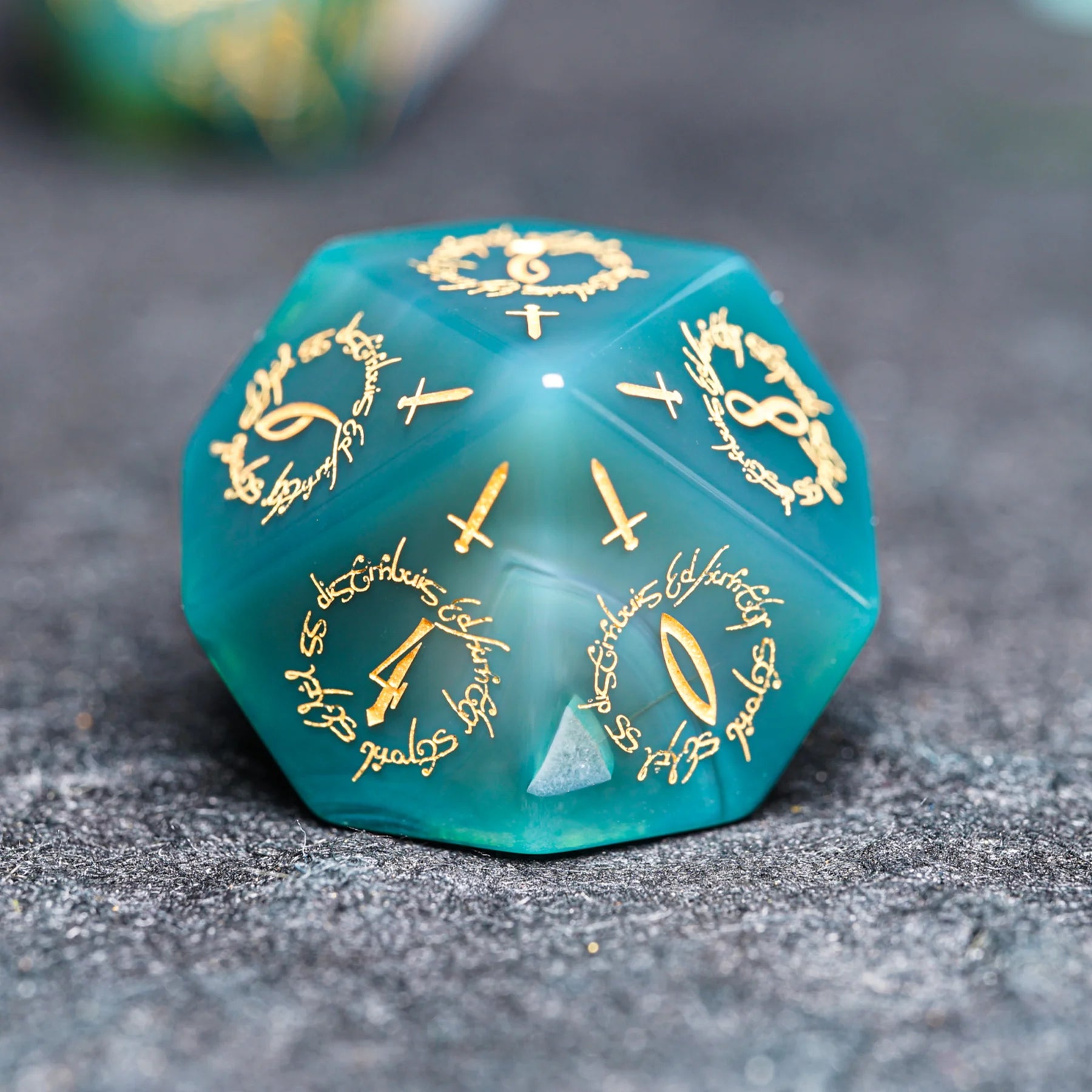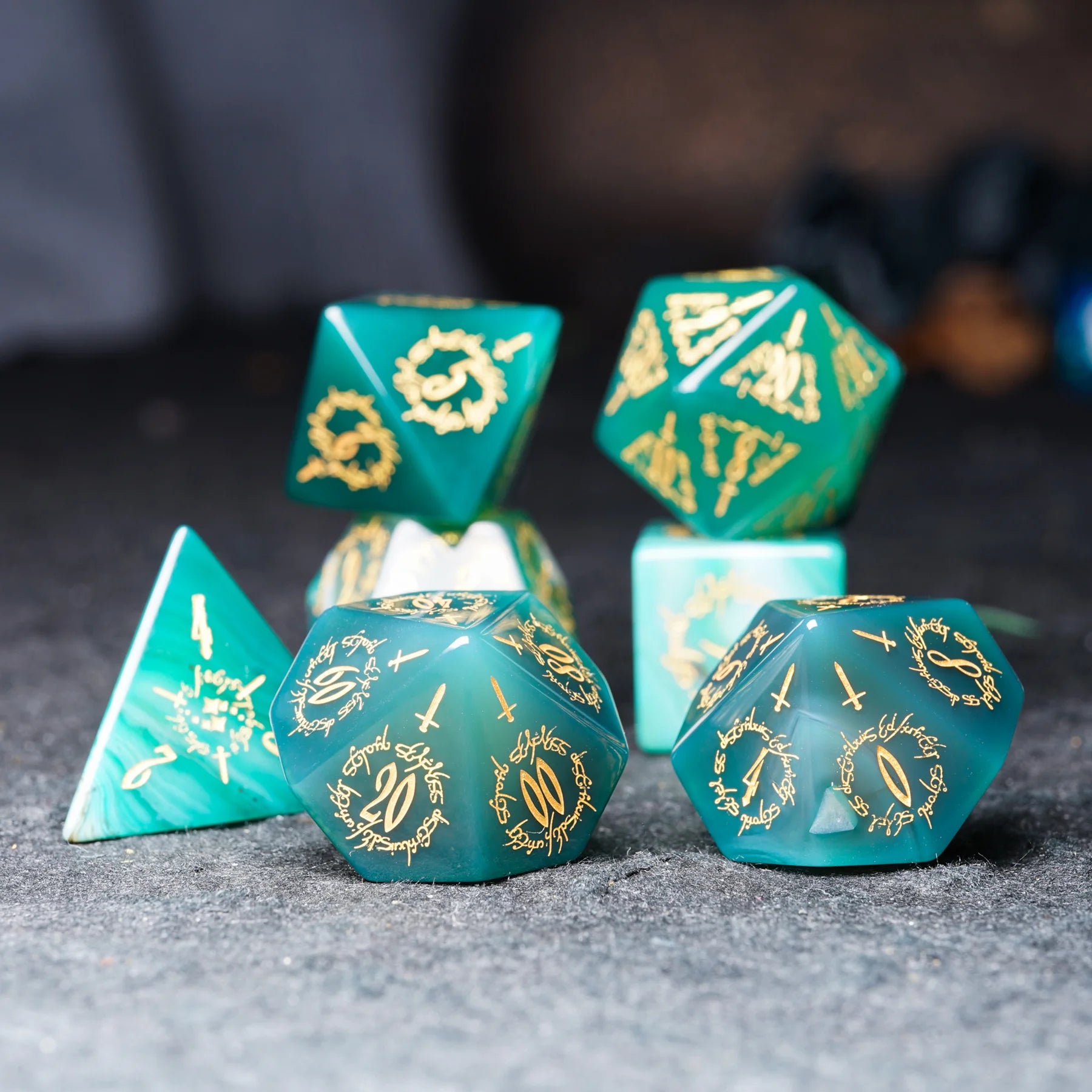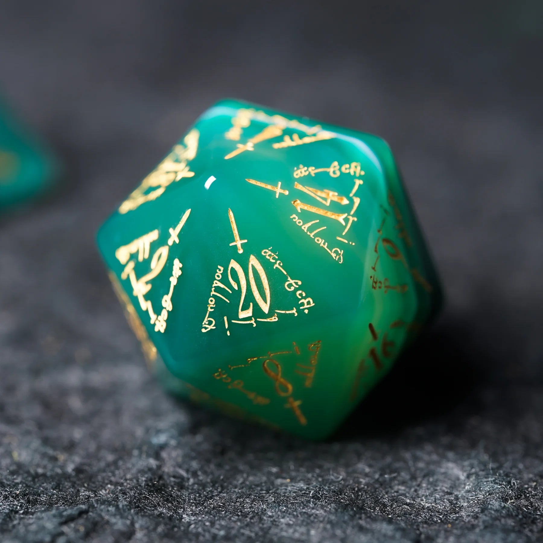 Jade Alchemist · Green Agate Engraved Gemstone Dice Set
