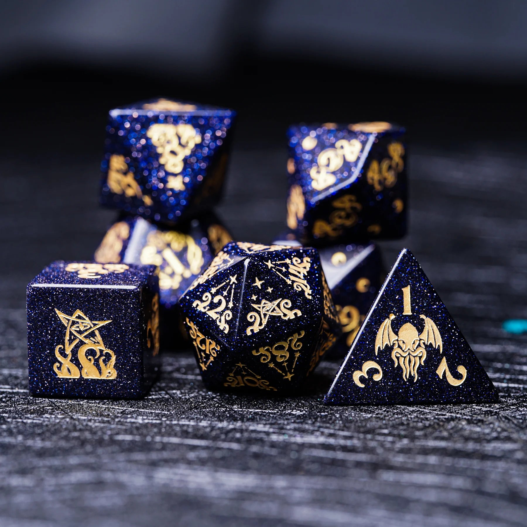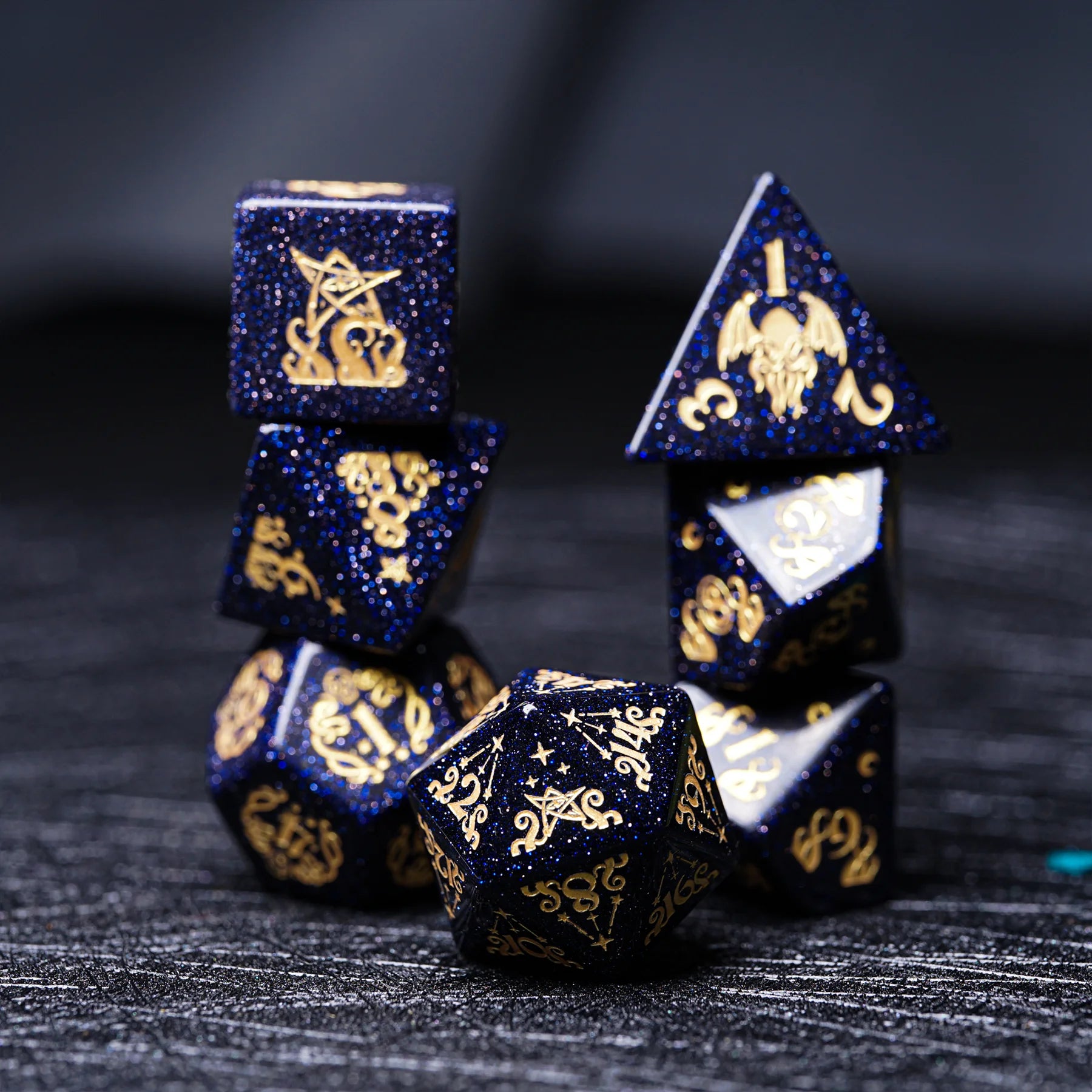 Star Murmur · Blue Sandstone Engraved Gemstone Dice Set