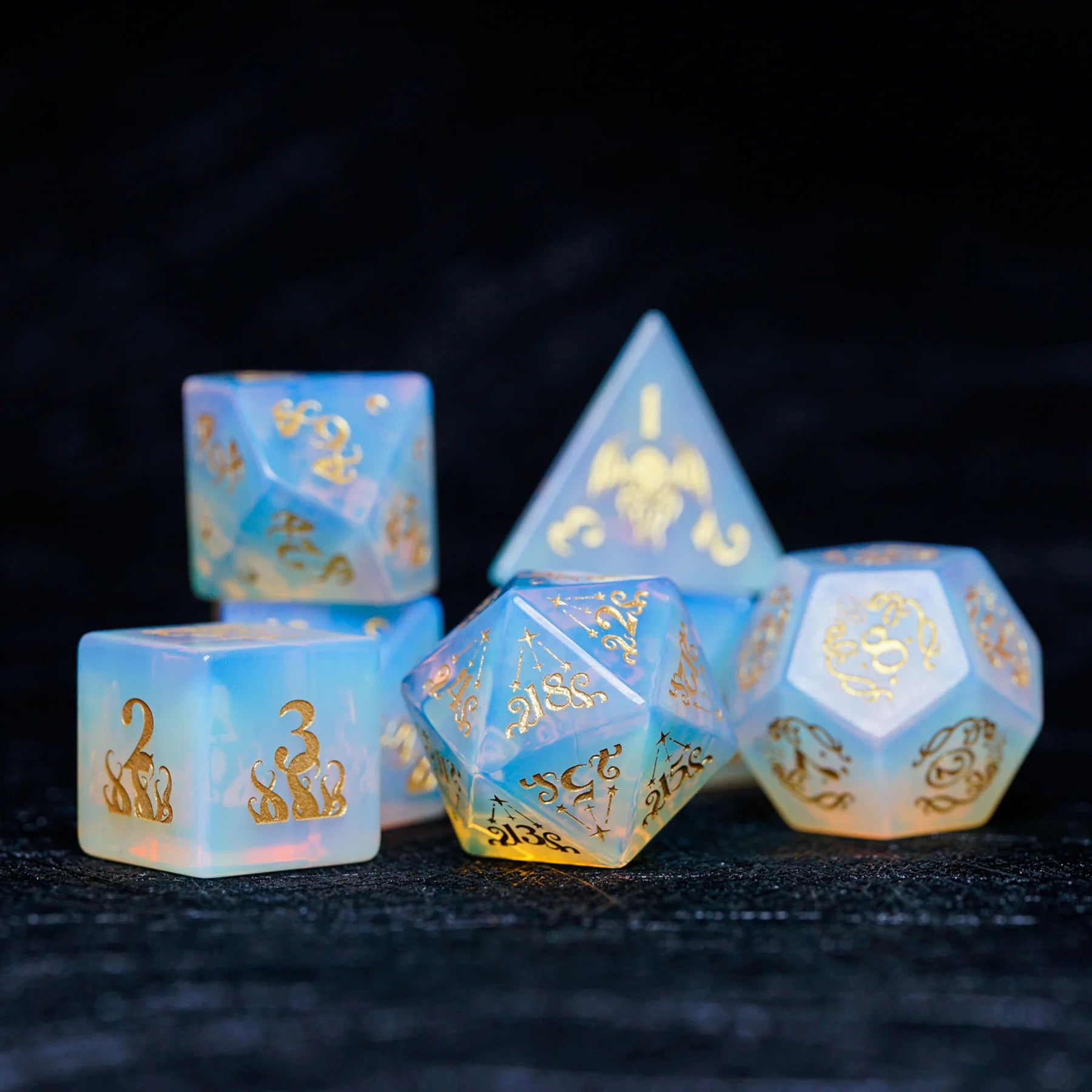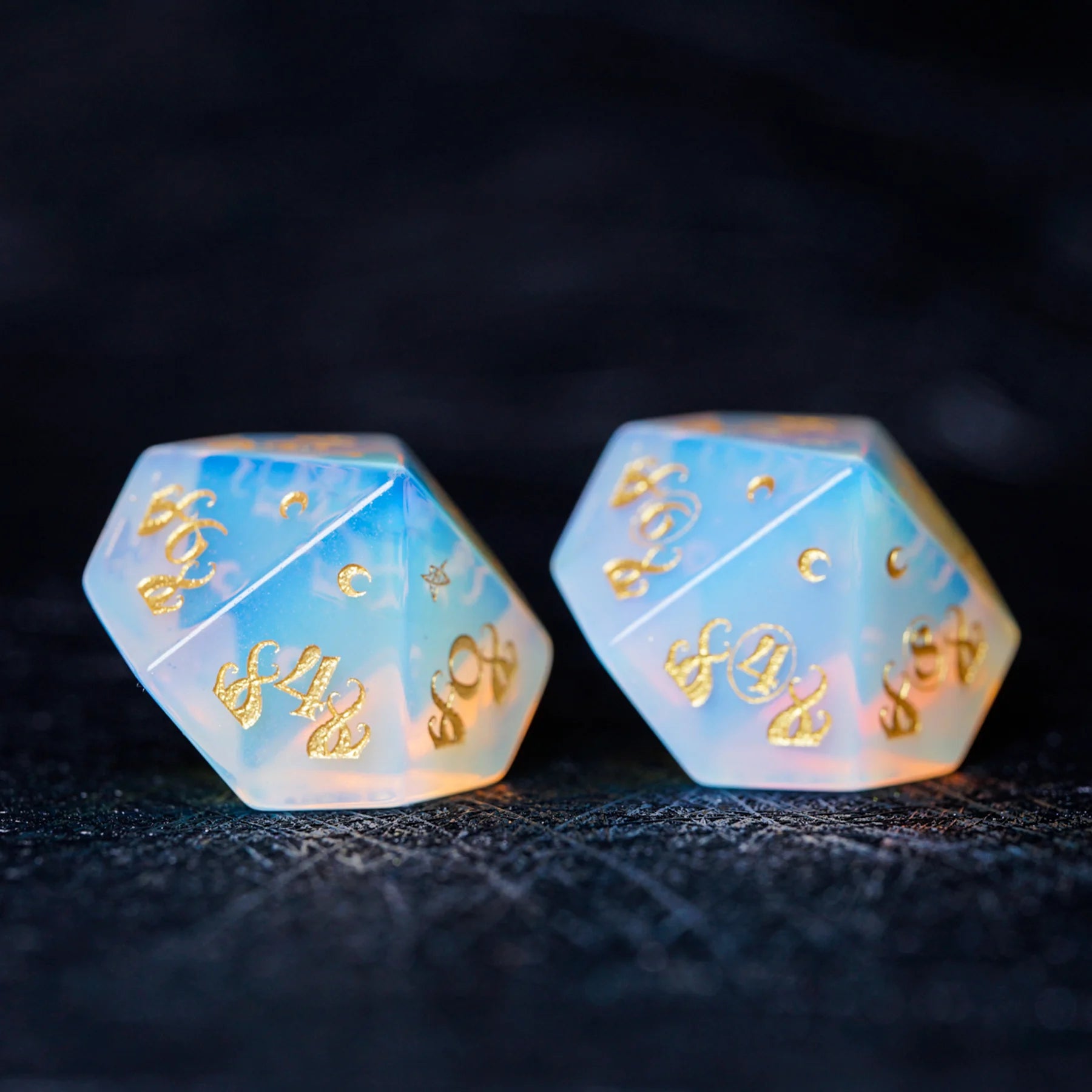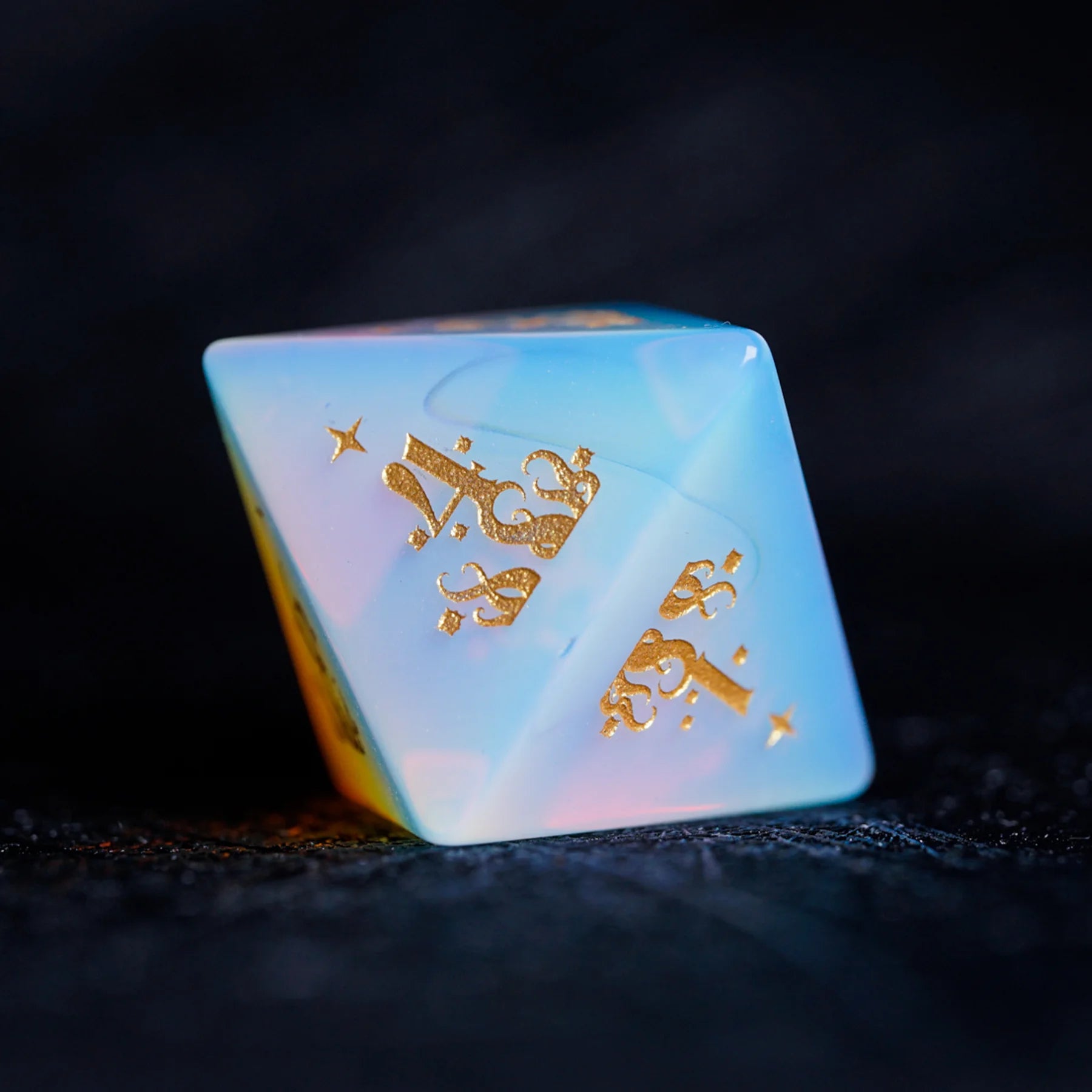 Void Glimmer · Opal Engraved Gemstone Dice Set